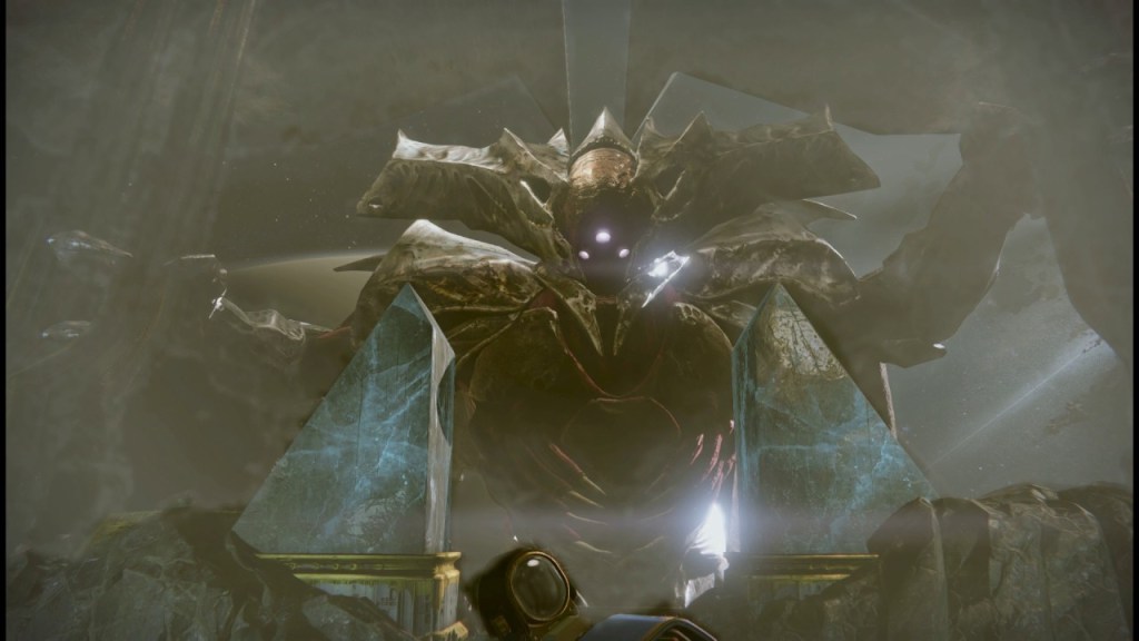 The fight will begin once you “break” the orb above the center pool. Golgoroth is basically a normal ogre in the sense that he shoot an eye blast at one person at a time. What you and your fireteam want to do is split into two groups of three, 3 for the left and 3 for the right. Kill all the regular enemies first, then the Major Adepts (killing one near Acolytes will enrage them).